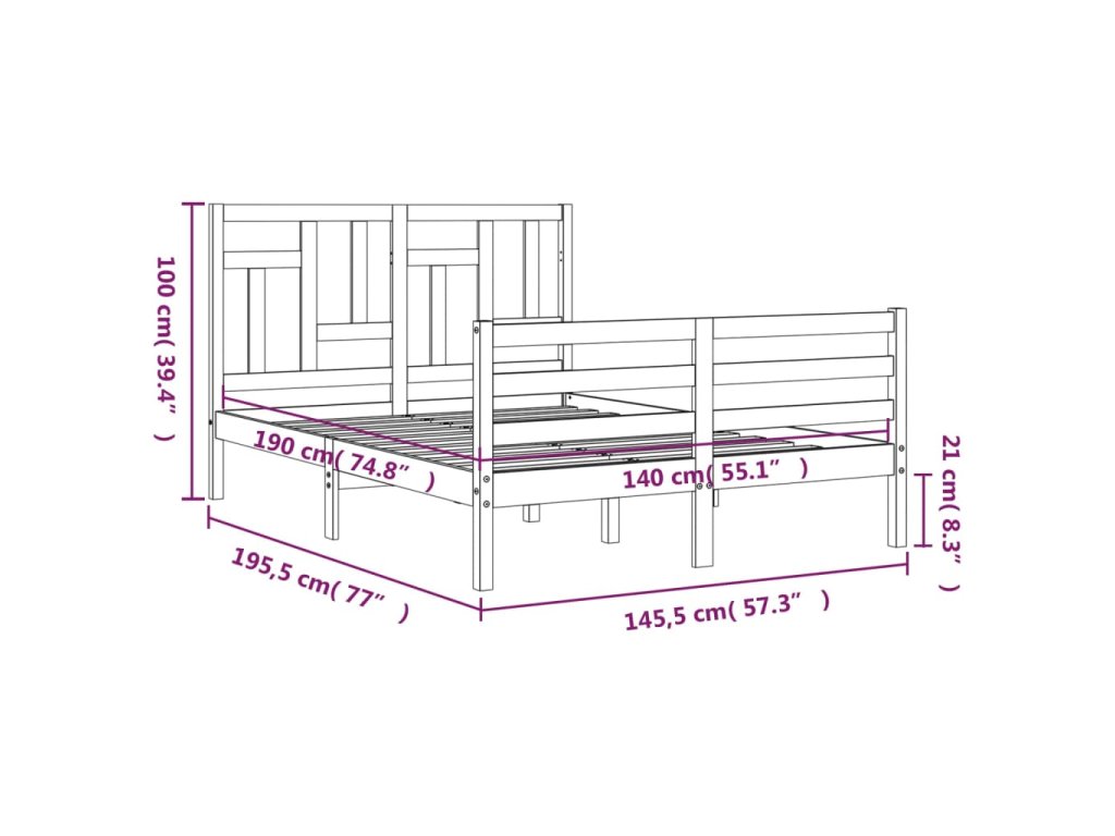 - Celkové rozměry postele: 195,5 x 145,5 x 100 cm (D x Š x V)