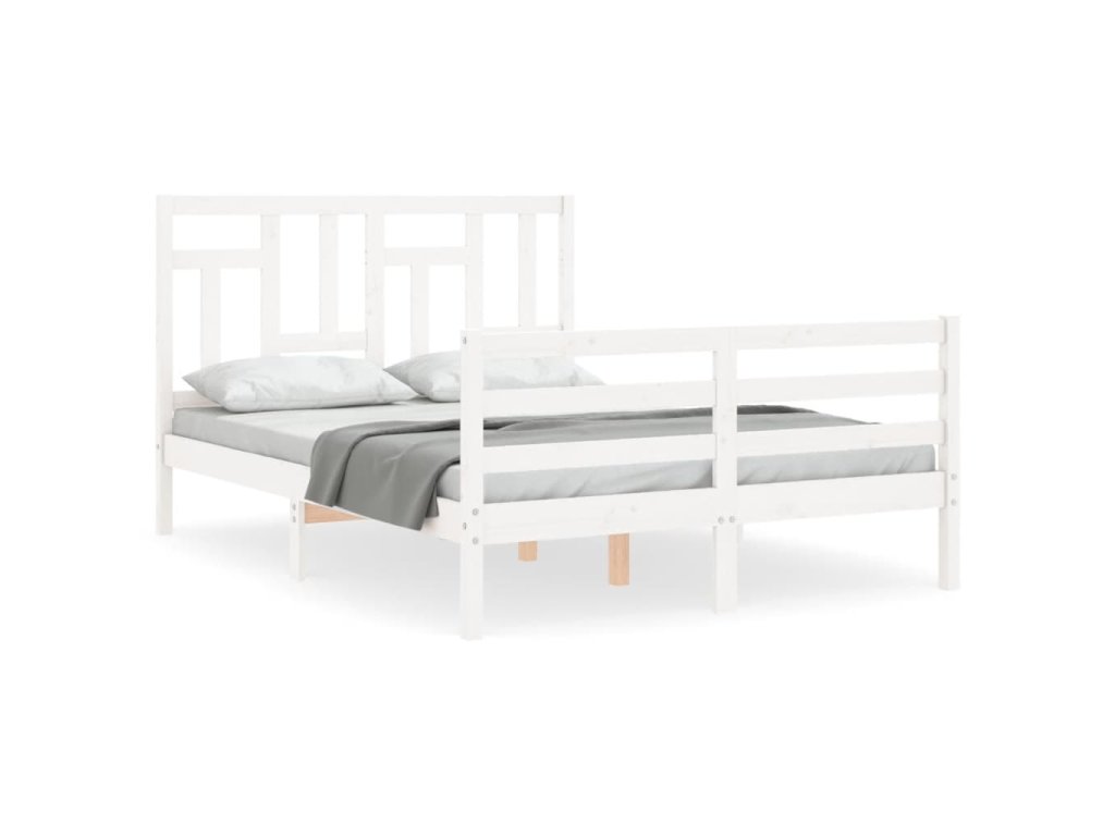 Rám postele s čelem bílý 140 x 190 cm masivní dřevo 3194942