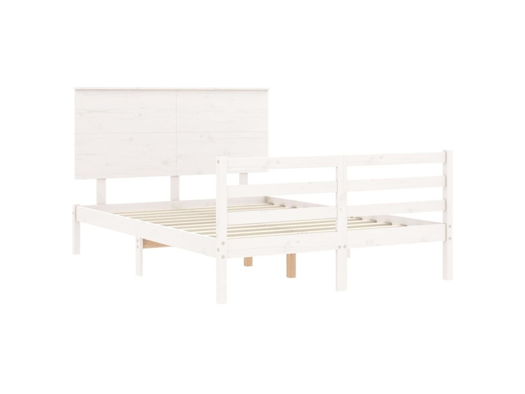 Rám postele s čelem bílý 140 x 190 cm masivní dřevo 3195202