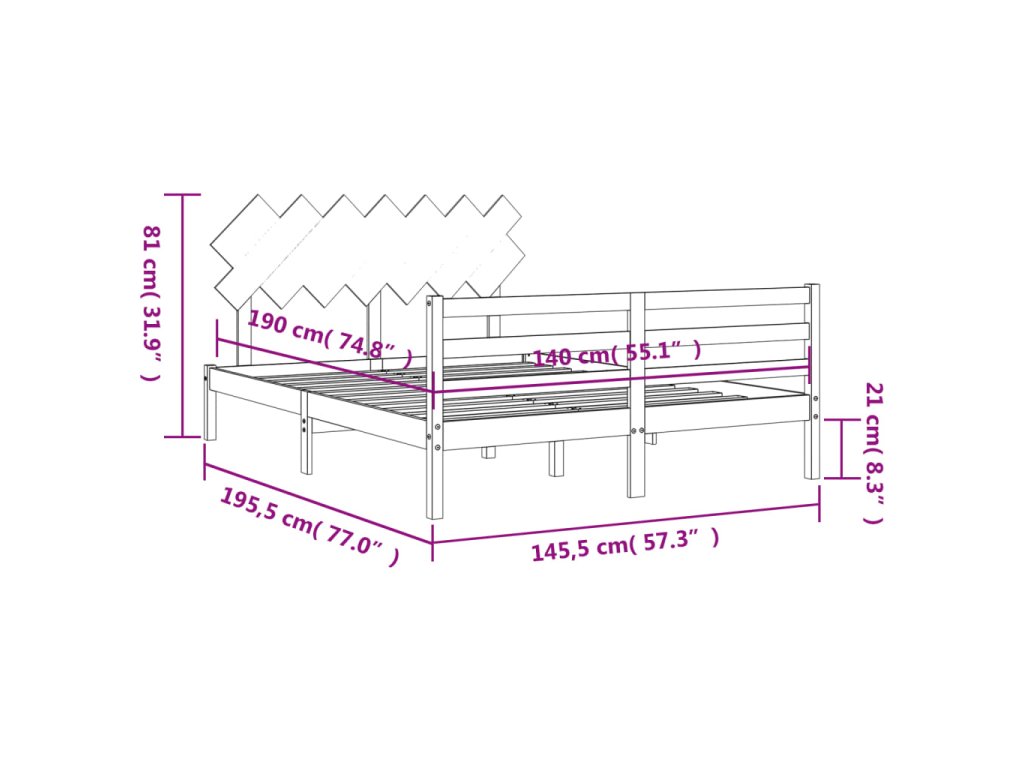 - Celkové rozměry postele: 195,5 x 145,5 x 81 cm (D x Š x V)