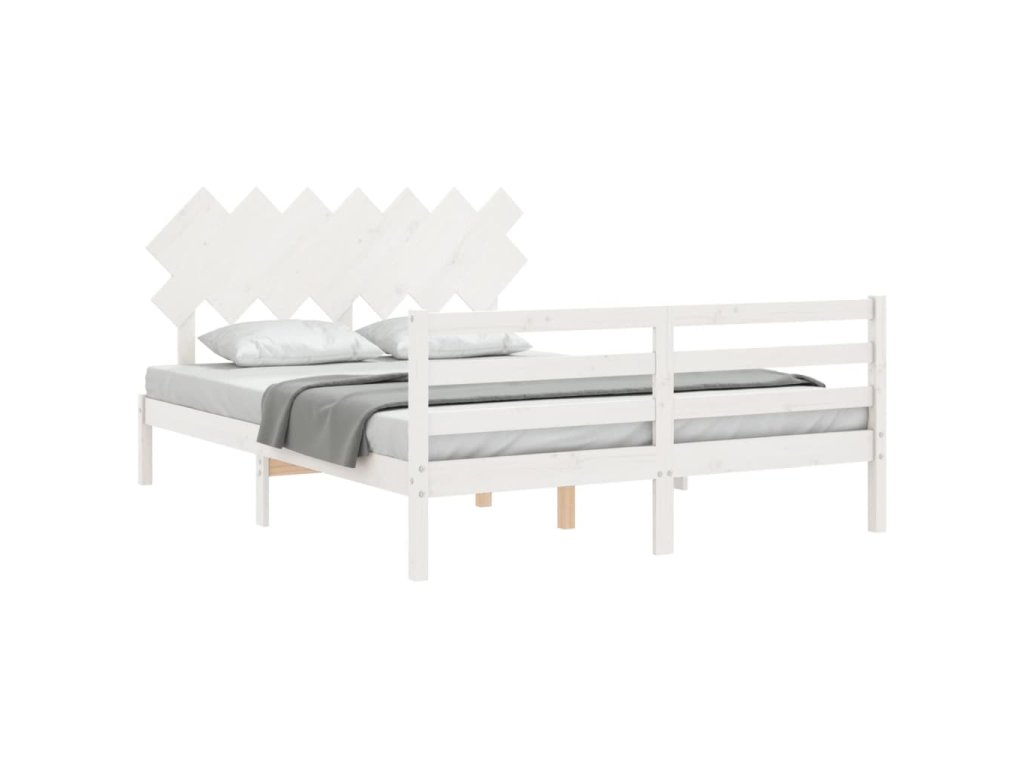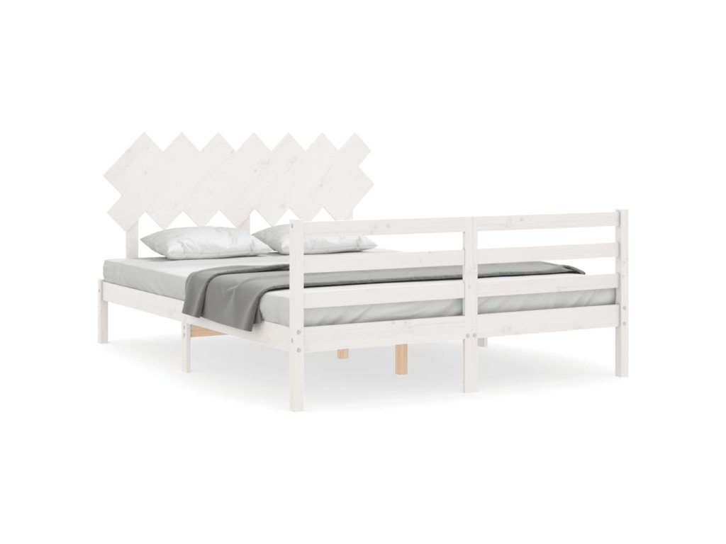 Rám postele s čelem bílý 140 x 190 cm masivní dřevo 3195267