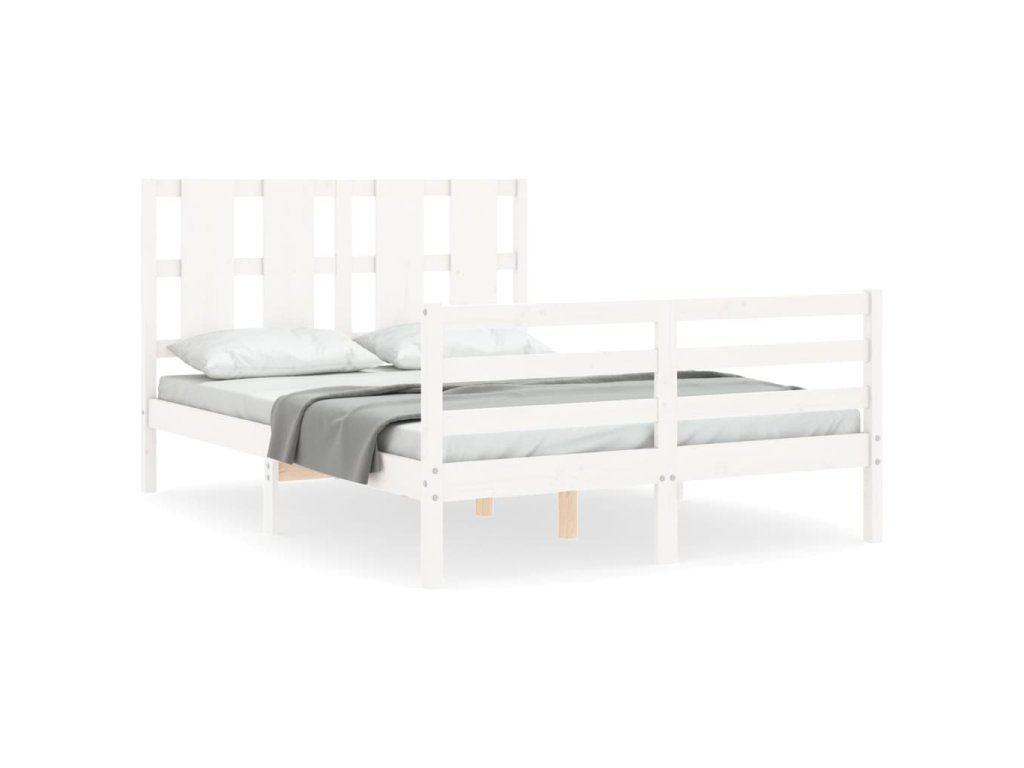 Rám postele s čelem bílý 140 x 200 cm masivní dřevo 3194117