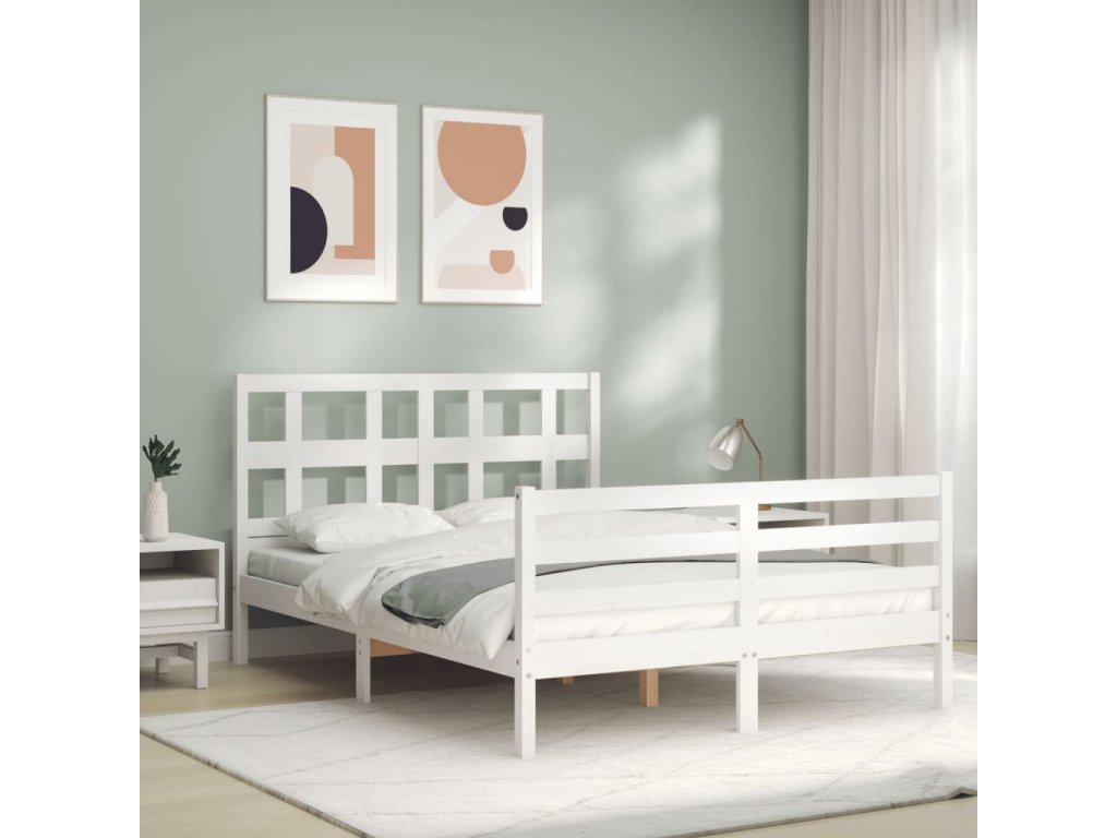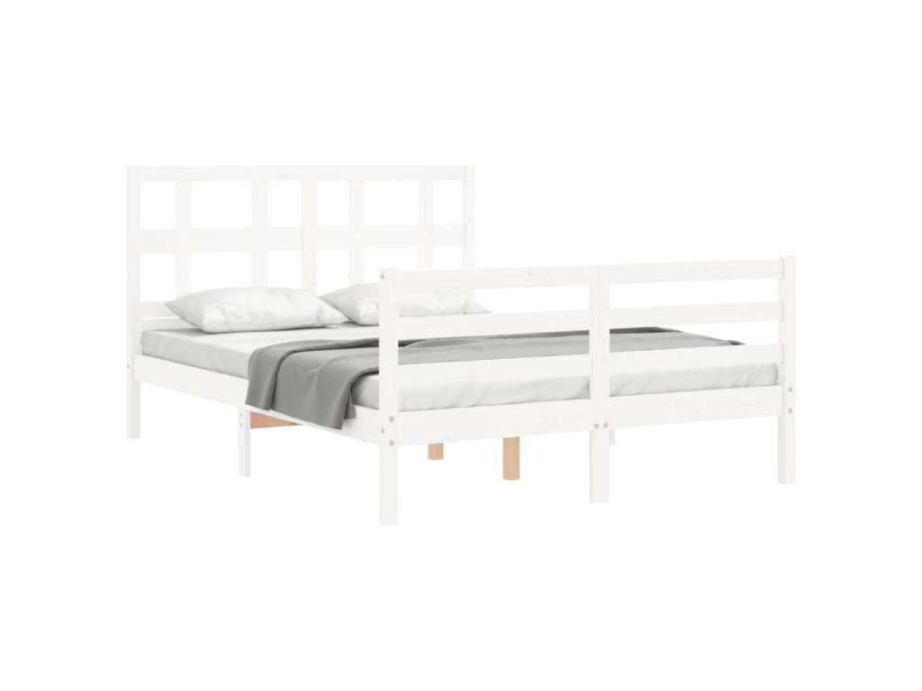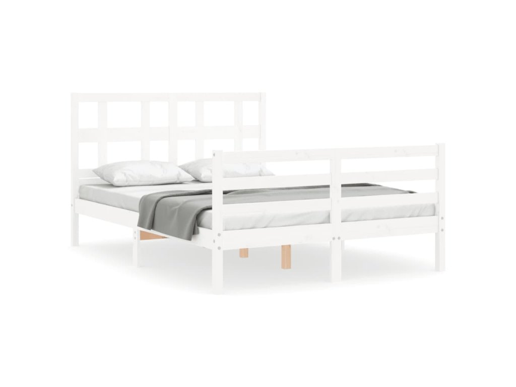 Rám postele s čelem bílý 140 x 200 cm masivní dřevo 3194832