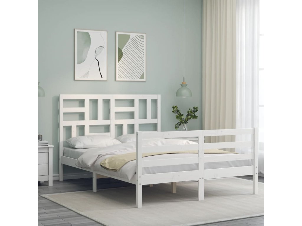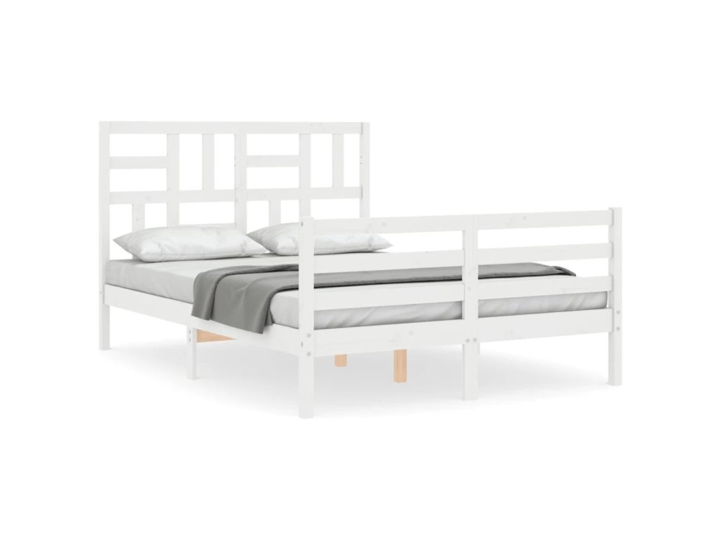 Rám postele s čelem bílý 140 x 200 cm masivní dřevo 3194897