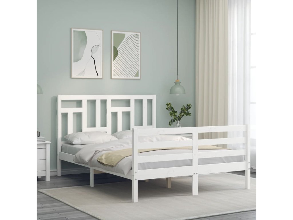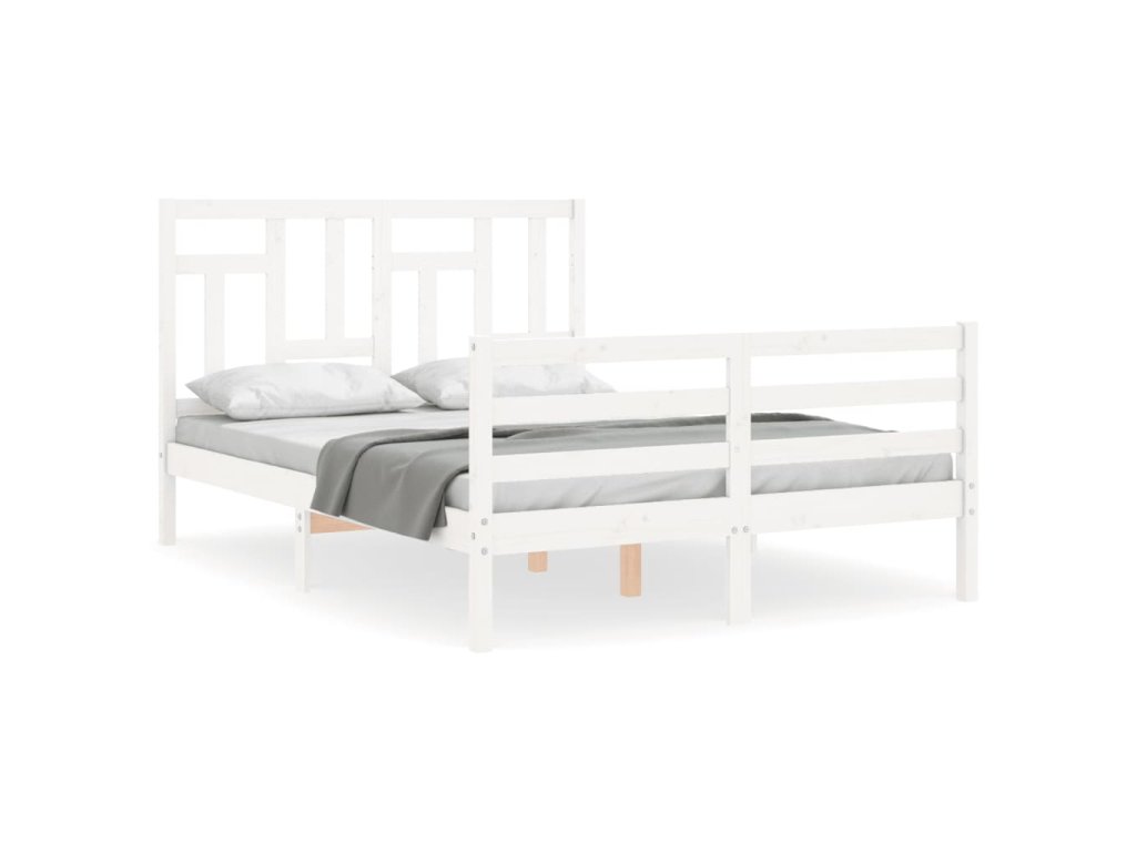 Rám postele s čelem bílý 140 x 200 cm masivní dřevo 3194962