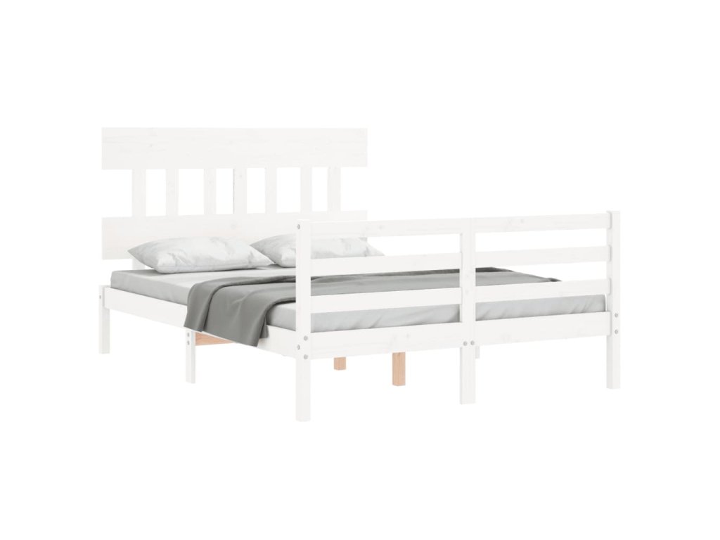 Rám postele s čelem bílý 140 x 200 cm masivní dřevo 3195157