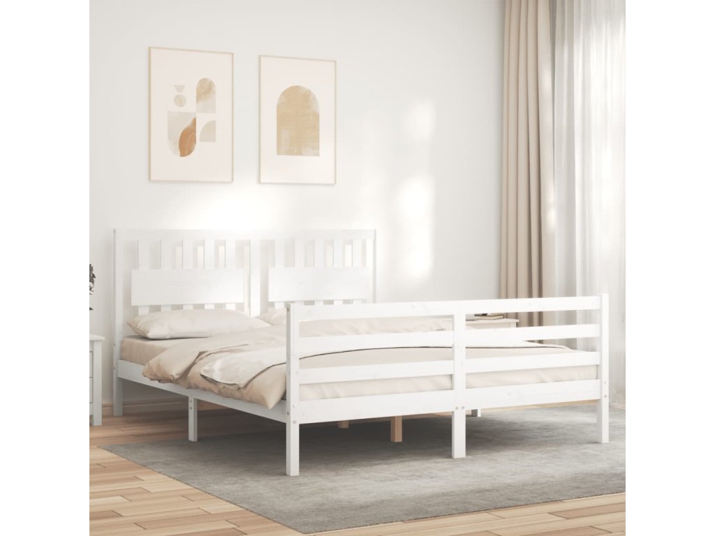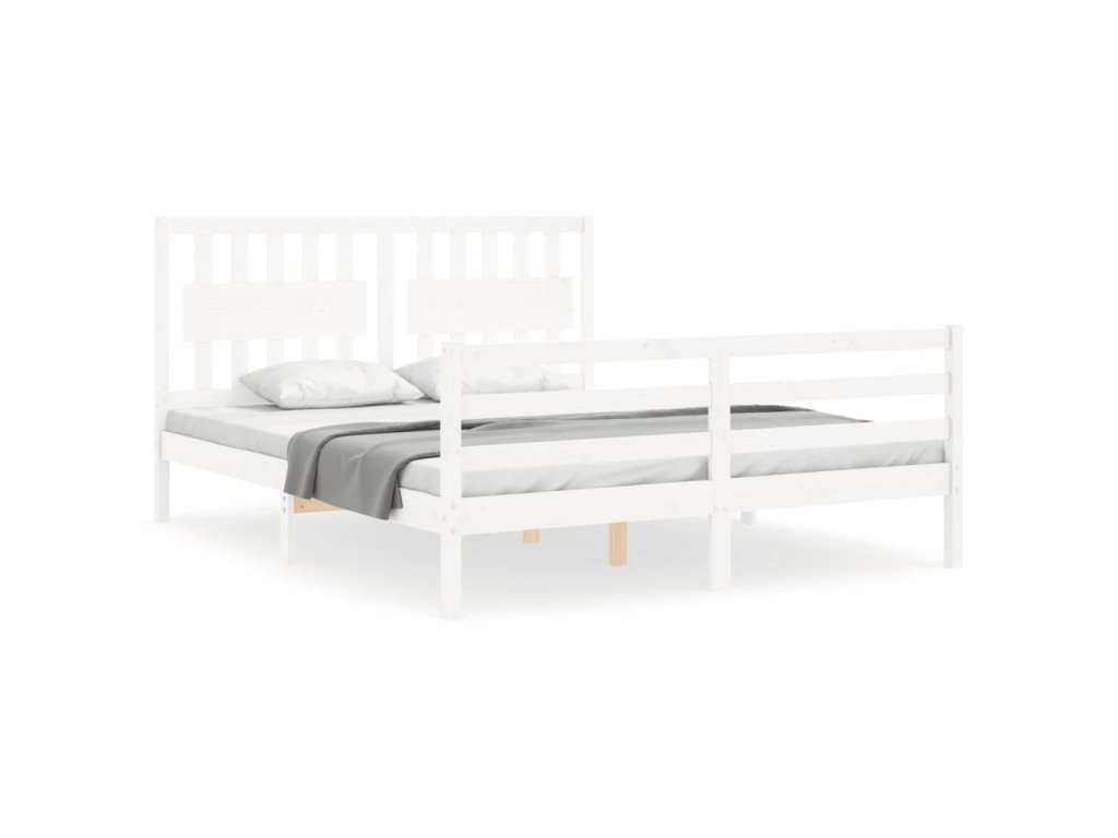 Rám postele s čelem bílý 160 x 200 cm masivní dřevo 3194322