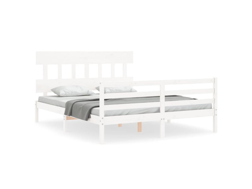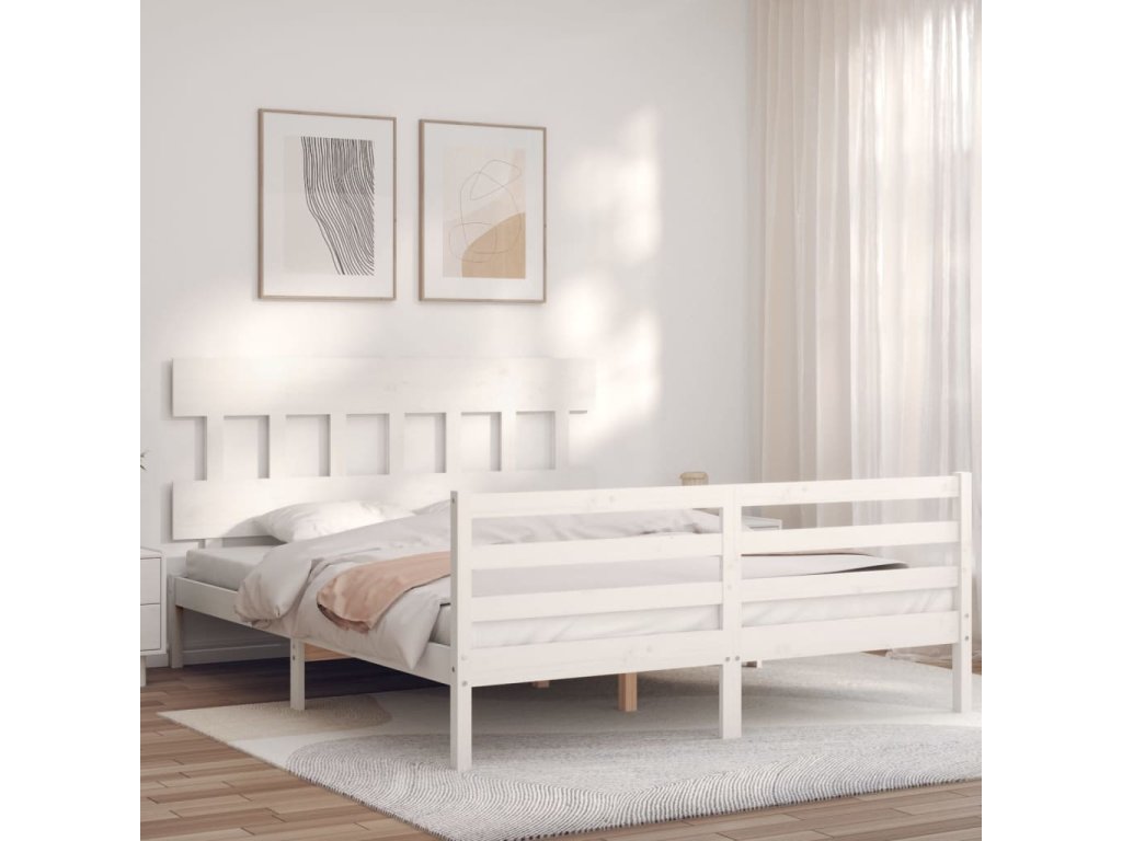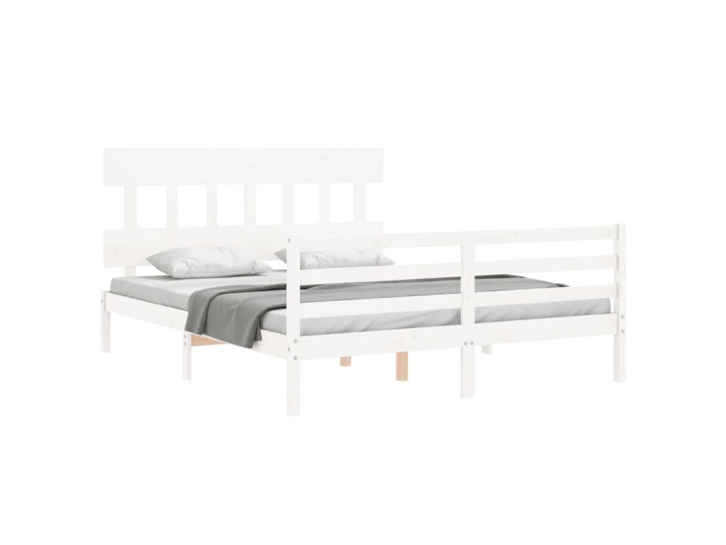 Rám postele s čelem bílý 160 x 200 cm masivní dřevo 3195167