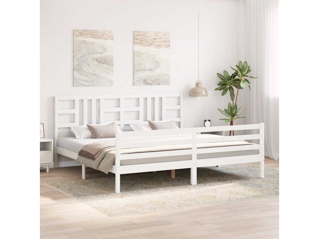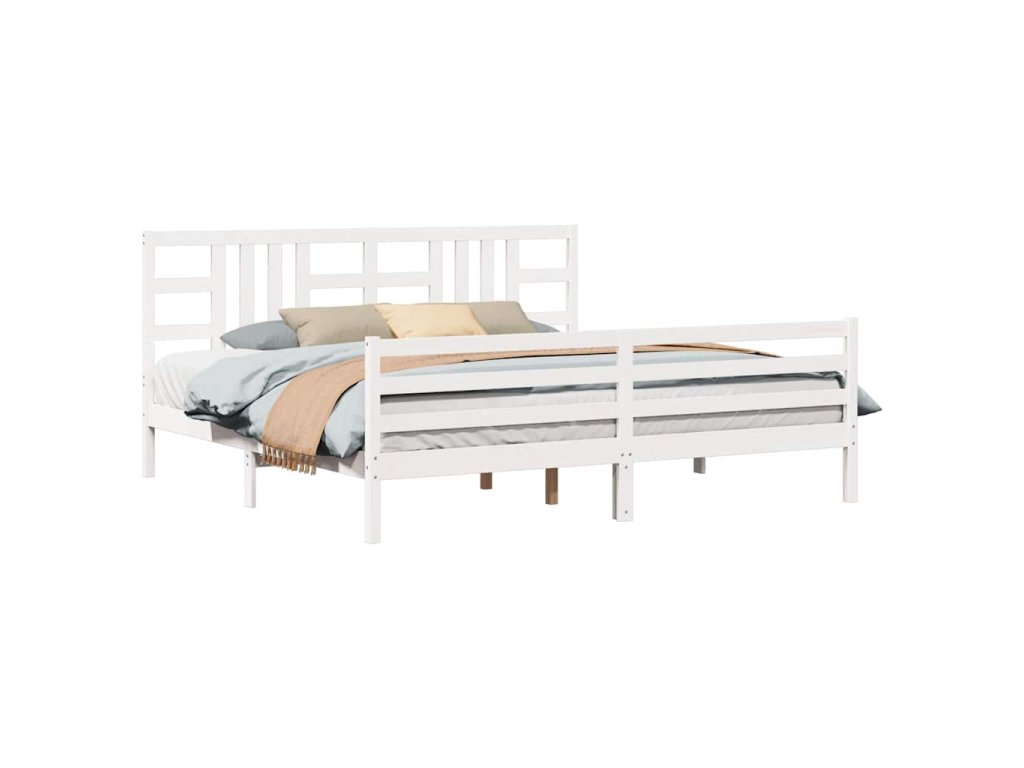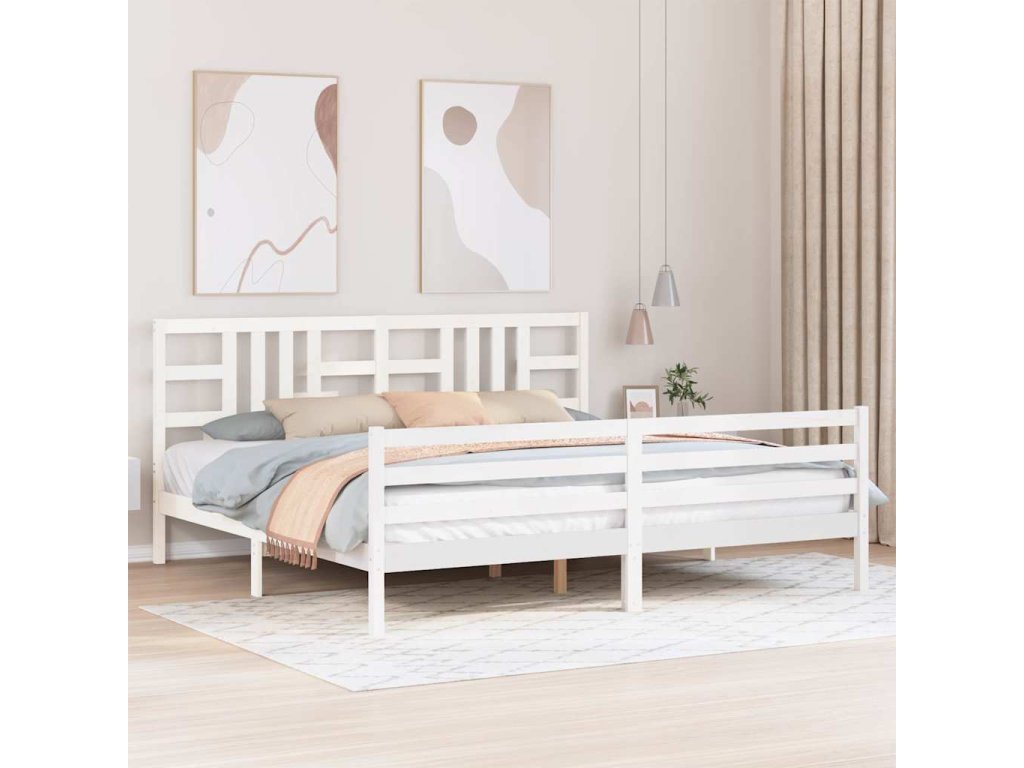 Rám postele s čelem bílý 200 x 200 cm masivní dřevo 3193942