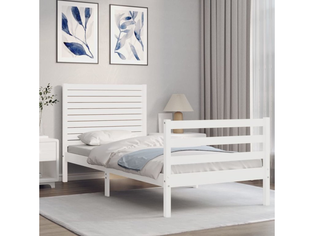Rám postele s čelem bílý 90 x 200 cm masivní dřevo 3195012