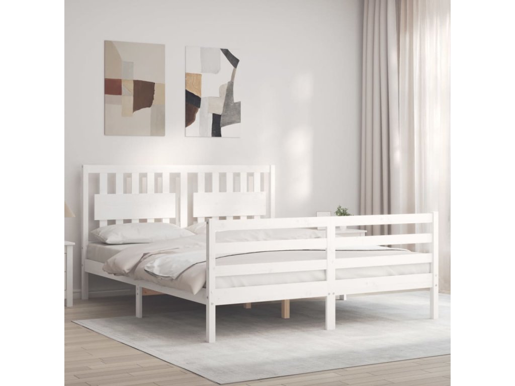 Rám postele s čelem bílý King Size masivní dřevo 3194317