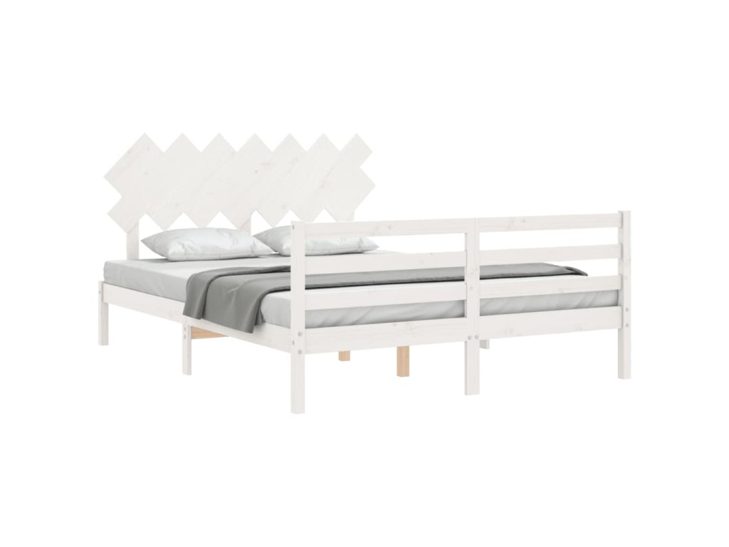 Rám postele s čelem bílý King Size masivní dřevo 3195292