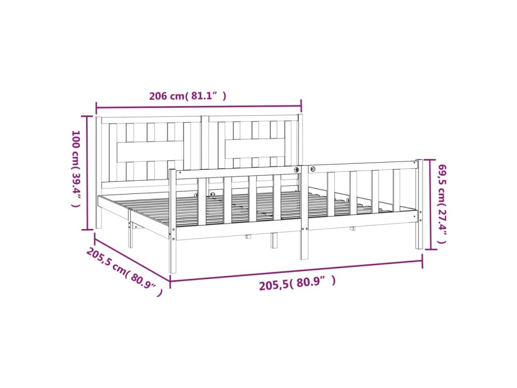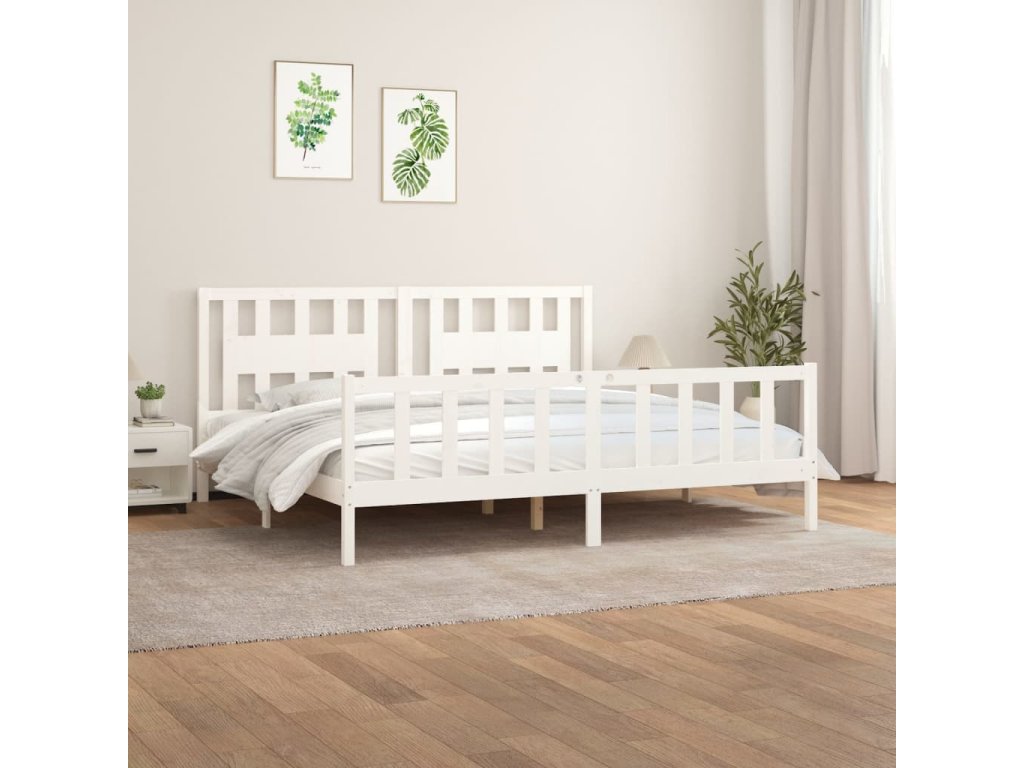 Rám postele s čelem bílý masivní borové dřevo 200 x 200 cm 3188187