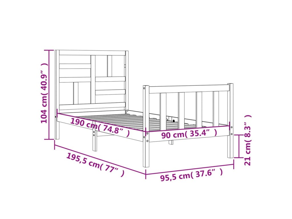 - Celkové rozměry postele: 195,5 x 95,5 x 104 cm (D x Š x V)