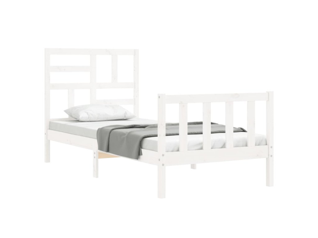 Rám postele s čelem bílý Single masivní dřevo 3193042