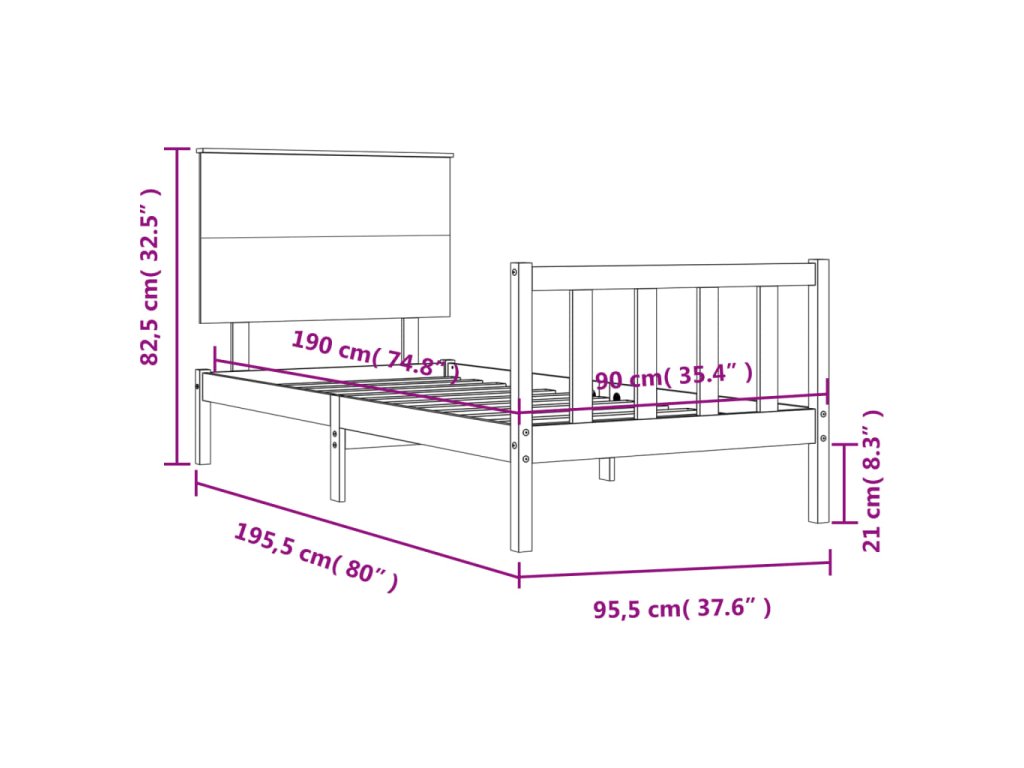 - Celkové rozměry postele: 195,5 x 95,5 x 82,5 cm (D x Š x V)