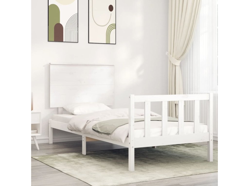 Rám postele s čelem bílý Single masivní dřevo 3193367