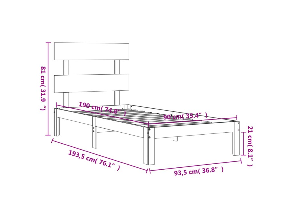 - Celkové rozměry postele: 193,5 x 93,5 x 81 cm (D x Š x V)