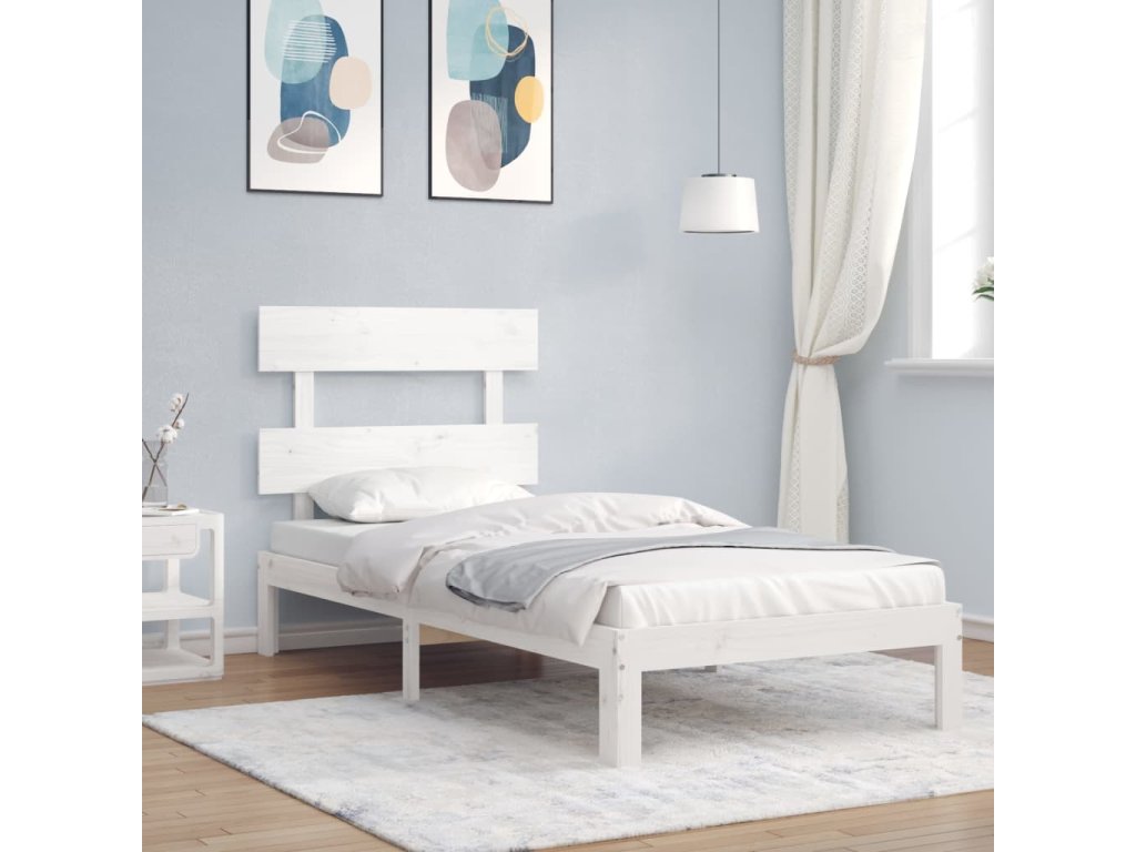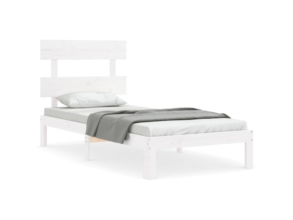 Rám postele s čelem bílý Single masivní dřevo 3193497