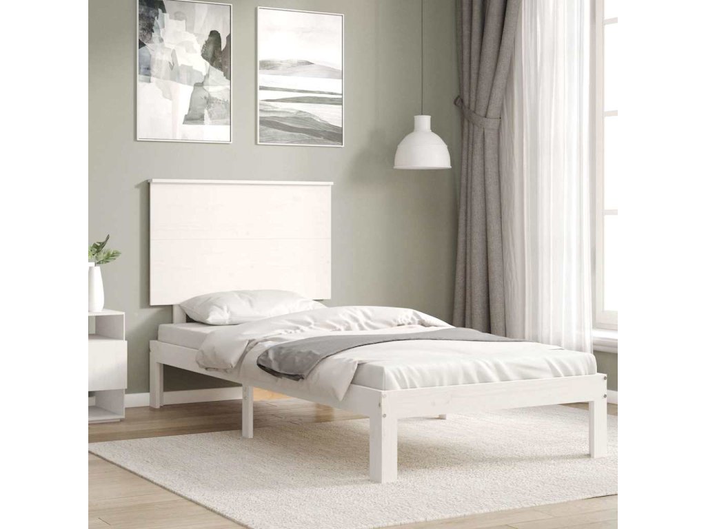 Rám postele s čelem bílý Single masivní dřevo 3193627