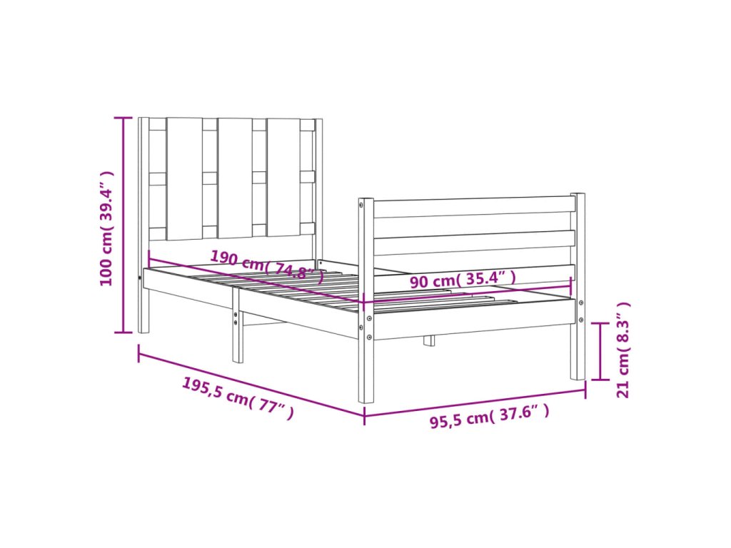 - Celkové rozměry postele: 195,5 x 95,5 x 100 cm (D x Š x V)
