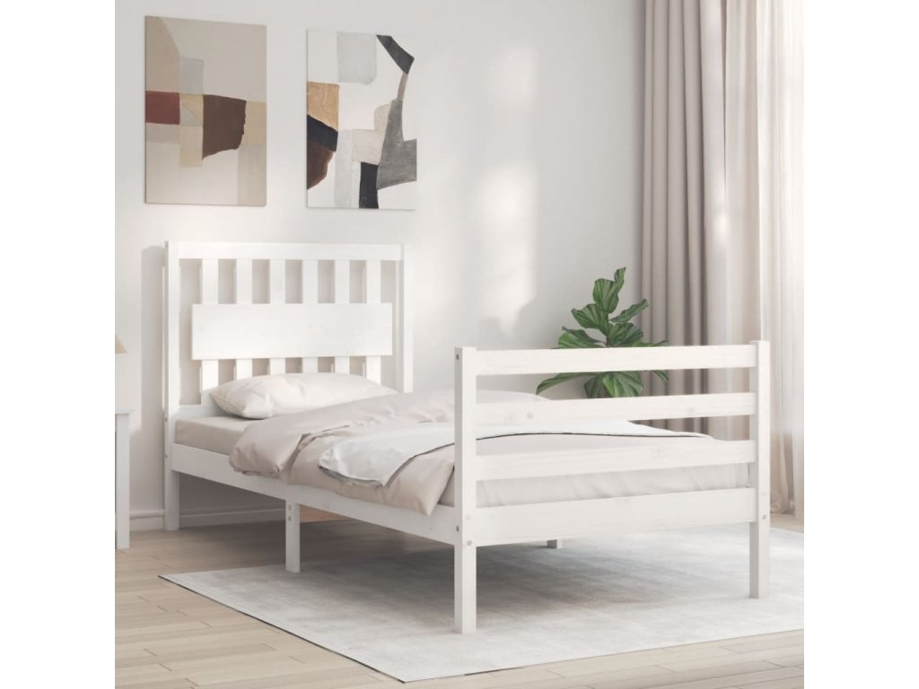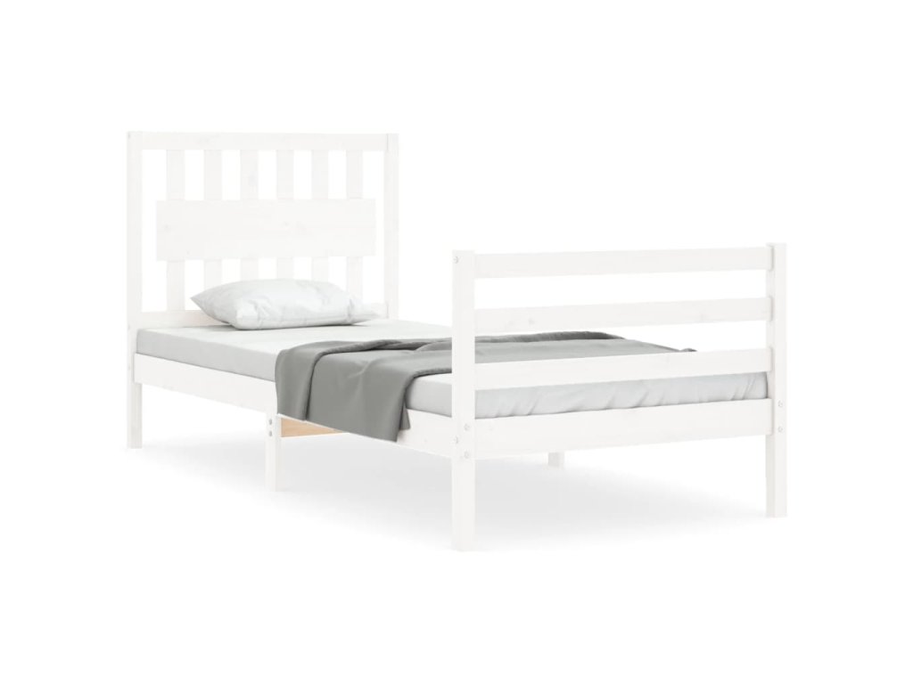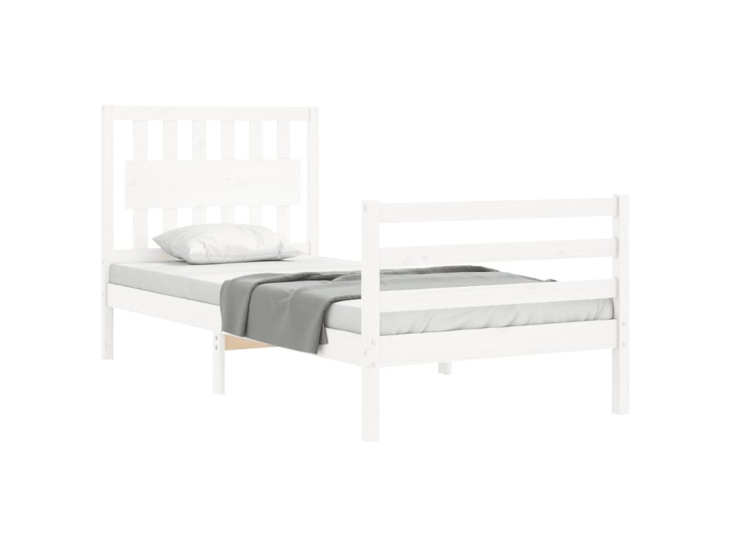 Rám postele s čelem bílý Single masivní dřevo 3194277