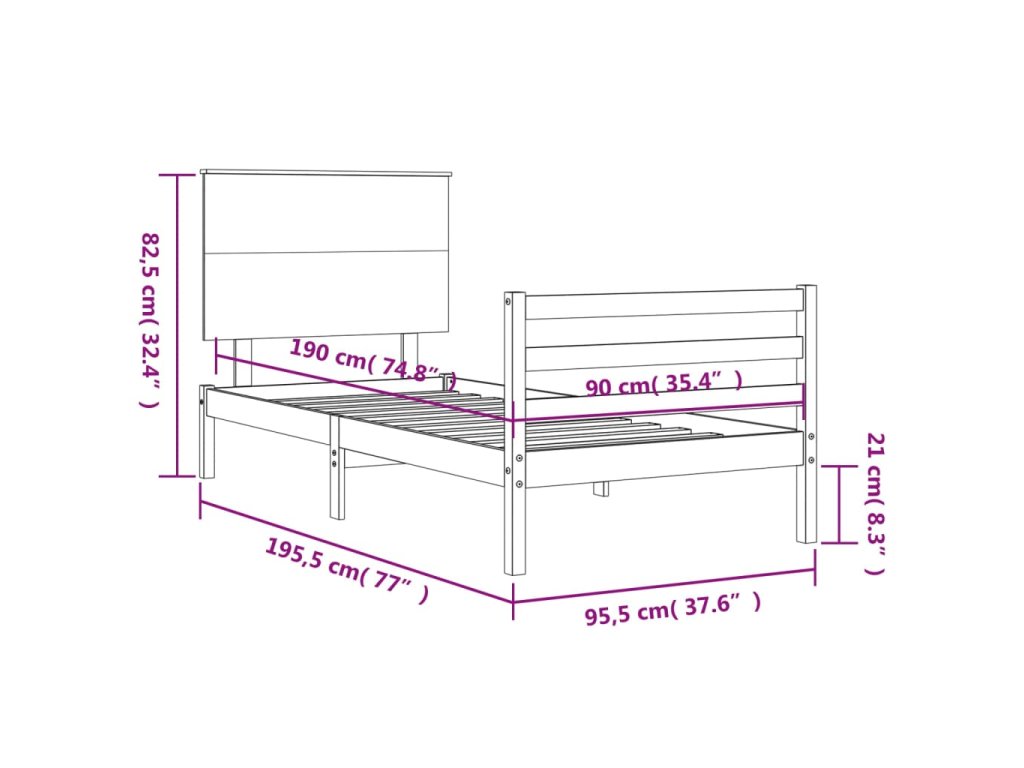 - Celkové rozměry postele: 195,5 x 95,5 x 82,5 cm (D x Š x V)