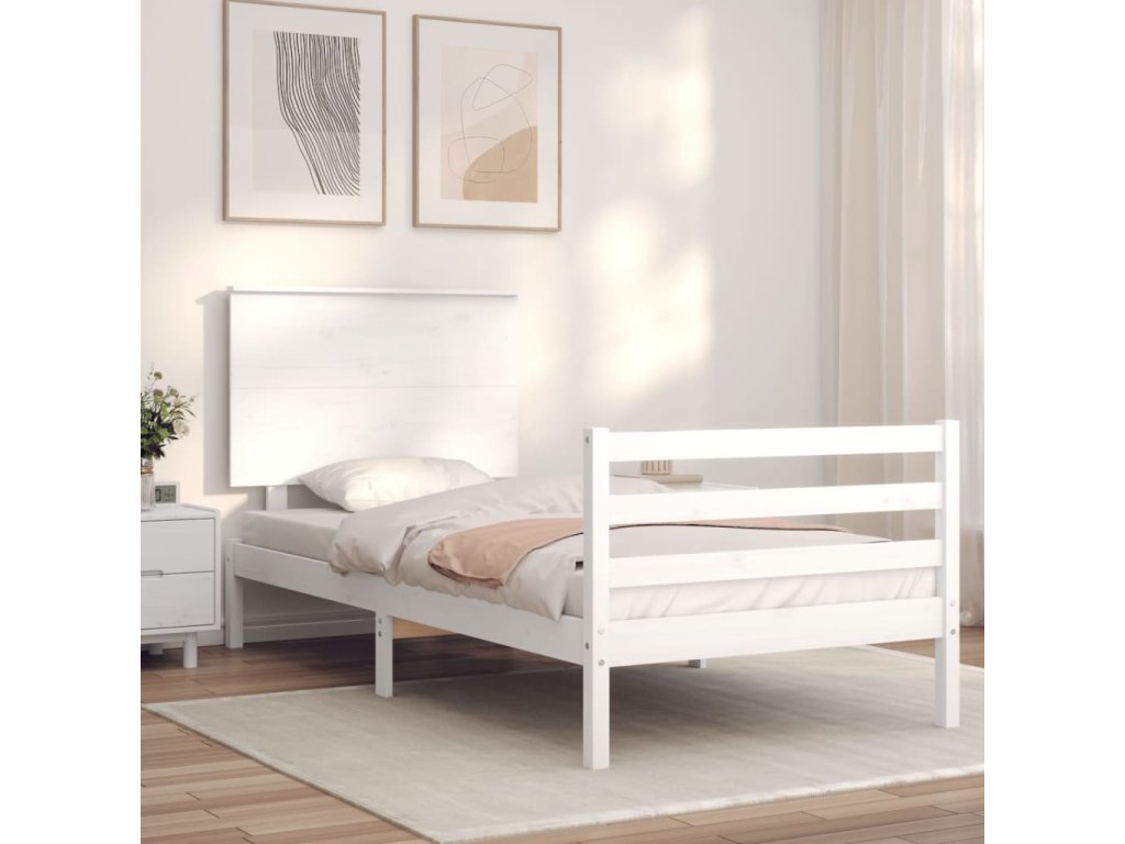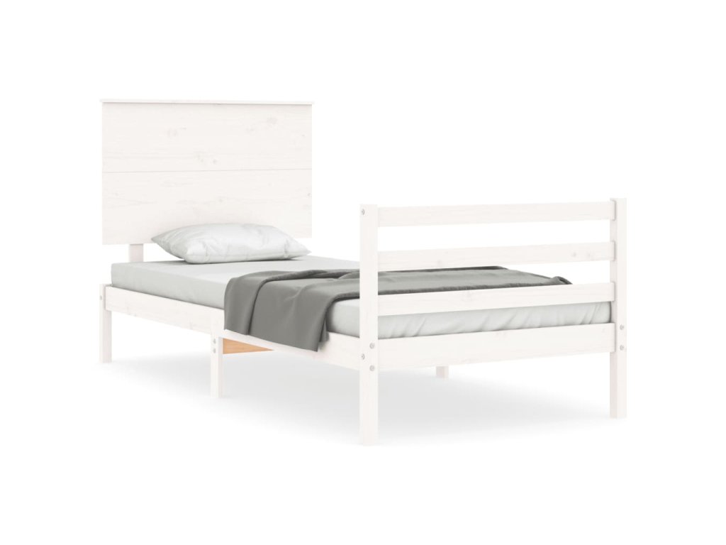 Rám postele s čelem bílý Single masivní dřevo 3195187