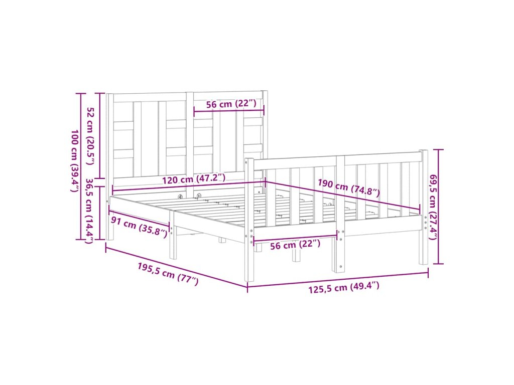 - Celkové rozměry postele: 195,5 x 125,5 x 100 cm (D x Š x V)