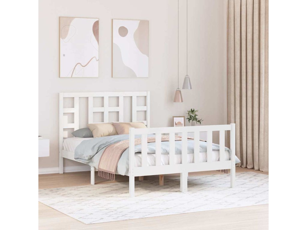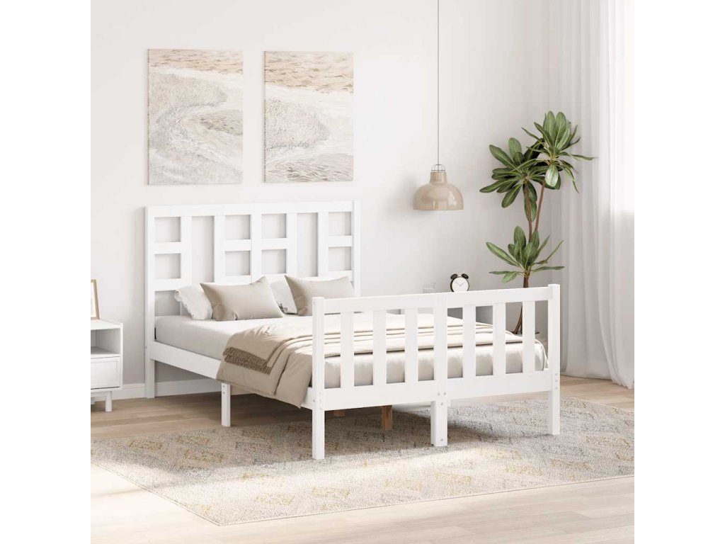 Rám postele s čelem bílý Small Double masivní dřevo 3191942
