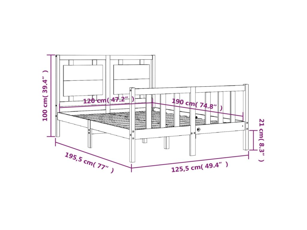 - Celkové rozměry postele: 195,5 x 125,5 x 100 cm (D x Š x V)
