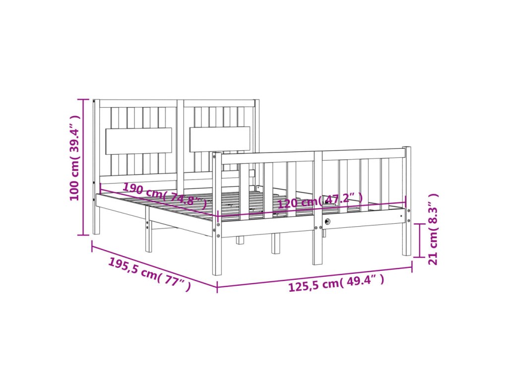 - Celkové rozměry postele: 195,5 x 125,5 x 100 cm (D x Š x V)