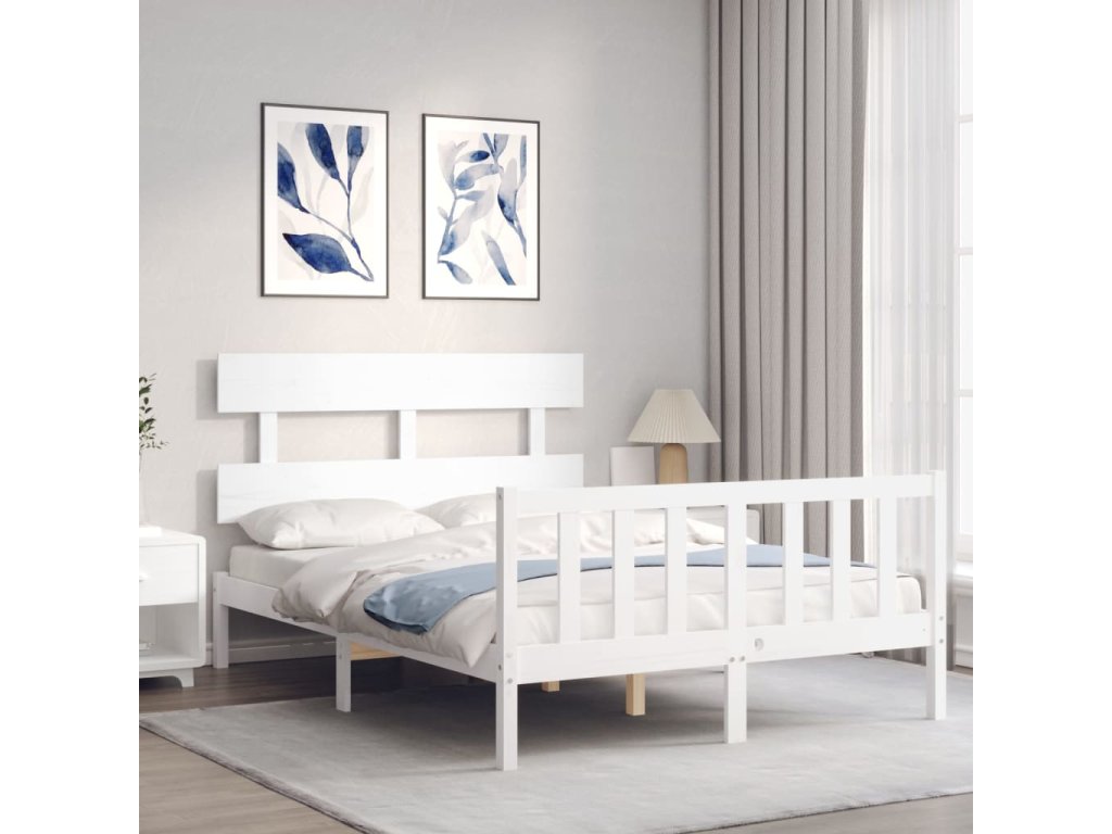 Rám postele s čelem bílý Small Double masivní dřevo 3193242