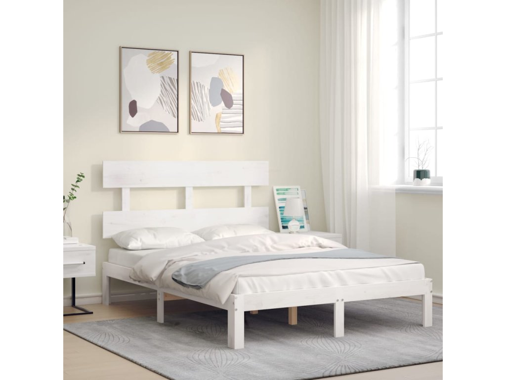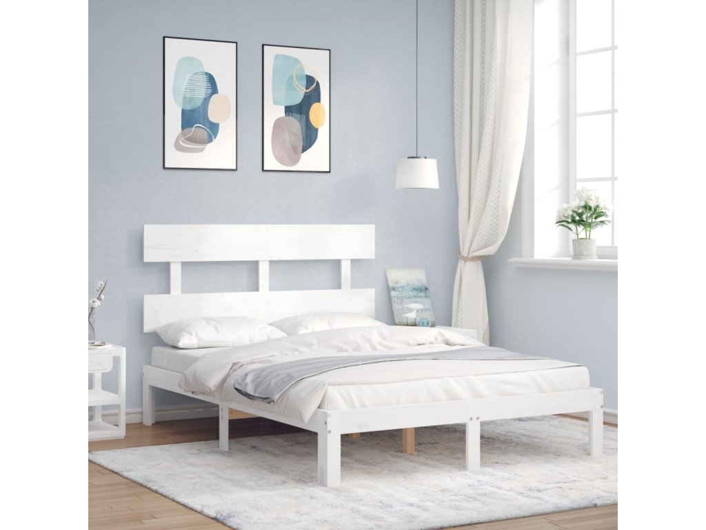 Rám postele s čelem bílý Small Double masivní dřevo 3193502