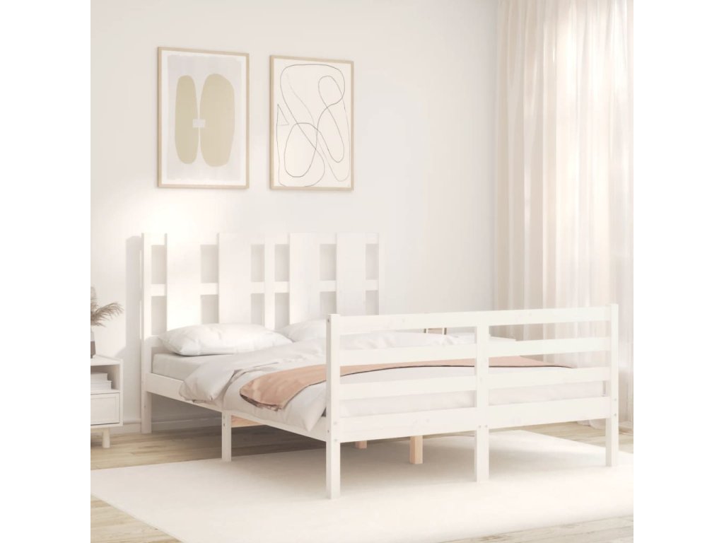 Rám postele s čelem bílý Small Double masivní dřevo 3194087