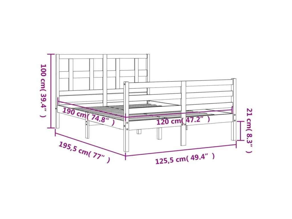 - Vhodné rozměry matrace (matrace není součástí balení): 120 x 190 cm (Š x D) (4FT Small Double)