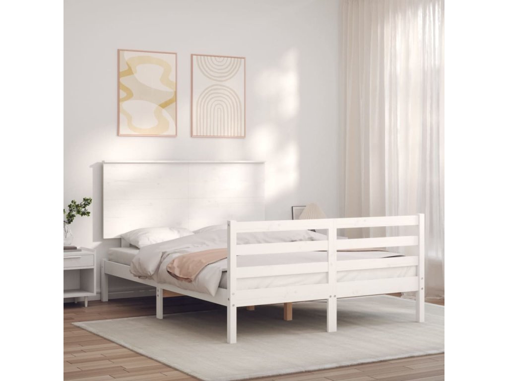 Rám postele s čelem bílý Small Double masivní dřevo 3195192