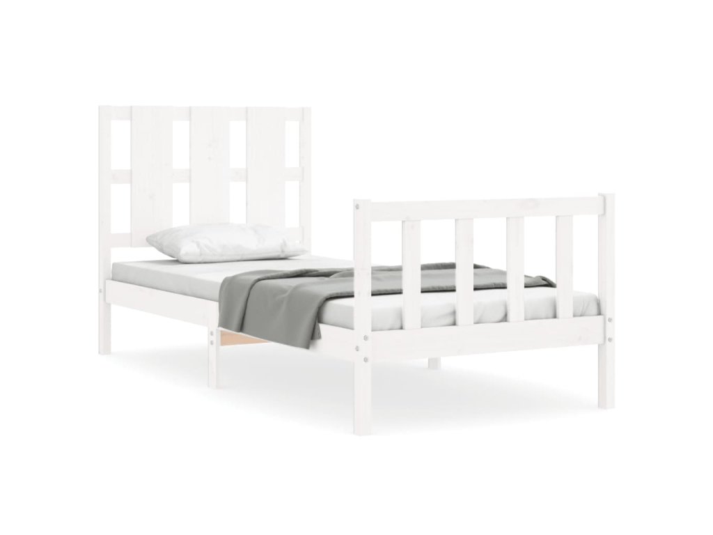 Rám postele s čelem bílý Small Single masivní dřevo 3192192