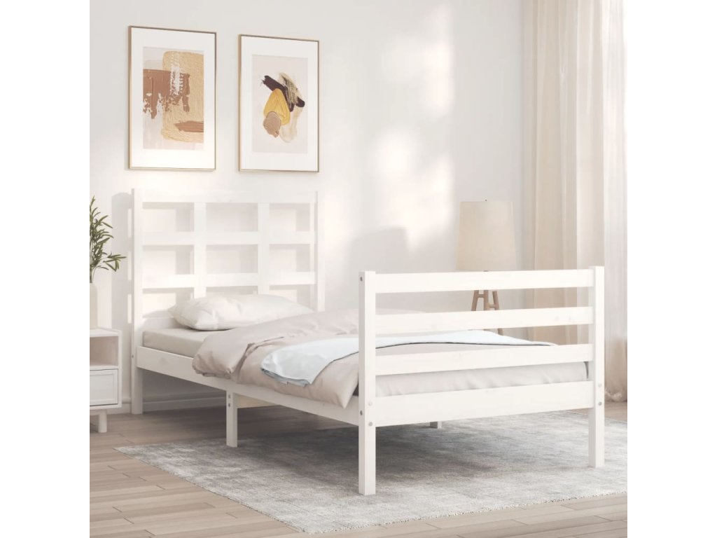 Rám postele s čelem bílý Small Single masivní dřevo 3193947