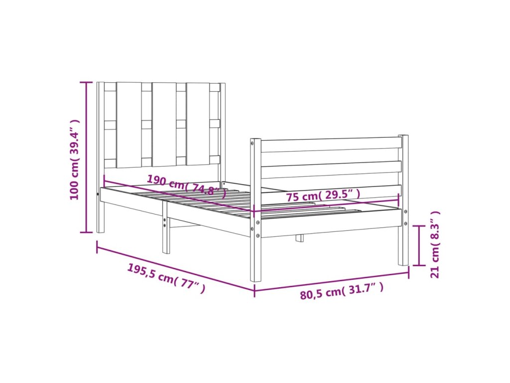 - Celkové rozměry postele: 195,5 x 80,5 x 100 cm (D x Š x V)