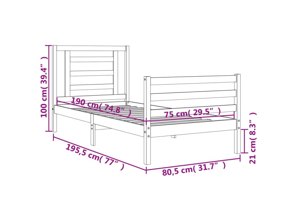 - Celkové rozměry postele: 195,5 x 80,5 x 100 cm (D x Š x V)