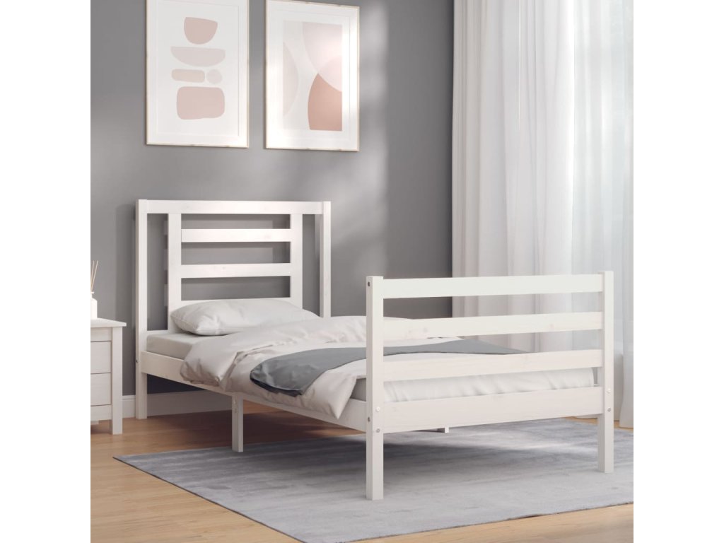 Rám postele s čelem bílý Small Single masivní dřevo 3194662