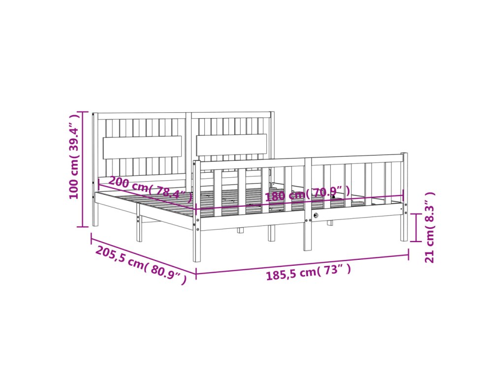- Celkové rozměry postele: 205,5 x 185,5 x 100 cm (D x Š x V)