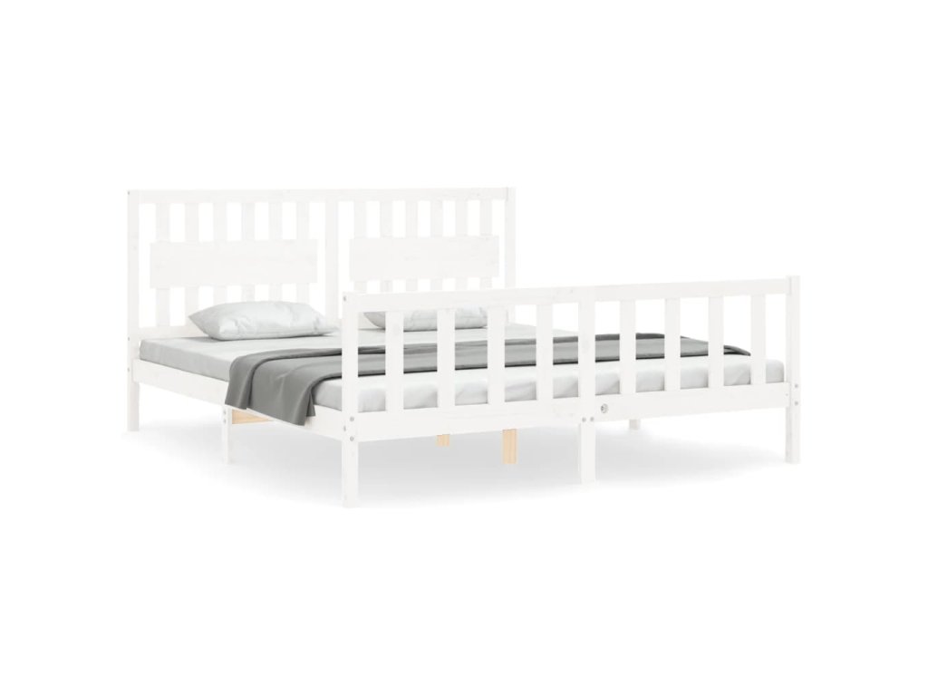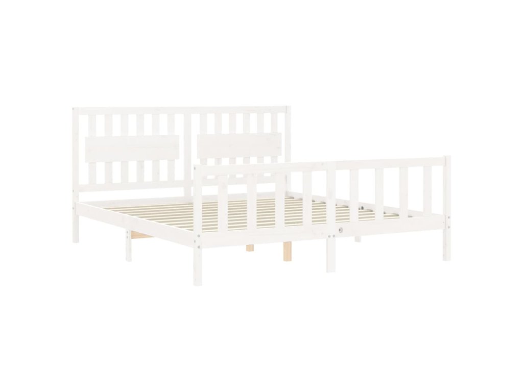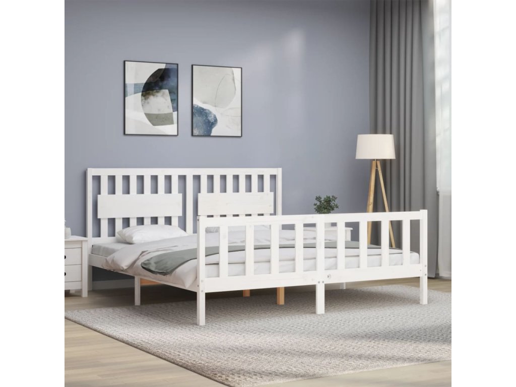 Rám postele s čelem bílý Super King Size masivní dřevo 3192442