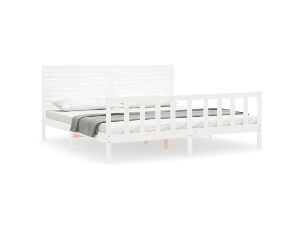Rám postele s čelem bílý Super King Size masivní dřevo 3193222