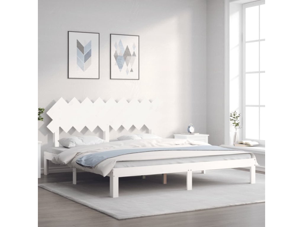 Rám postele s čelem bílý Super King Size masivní dřevo 3193742