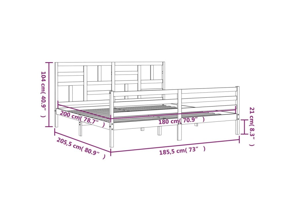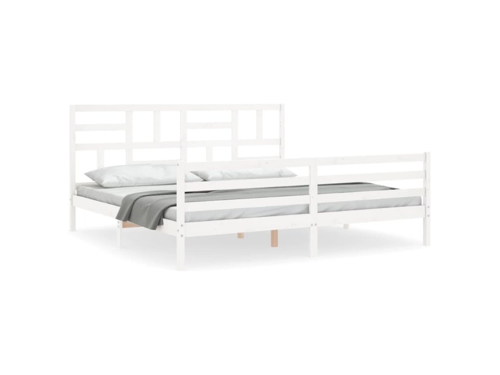 Rám postele s čelem bílý Super King Size masivní dřevo 3194912