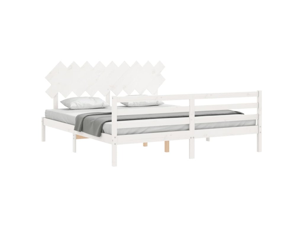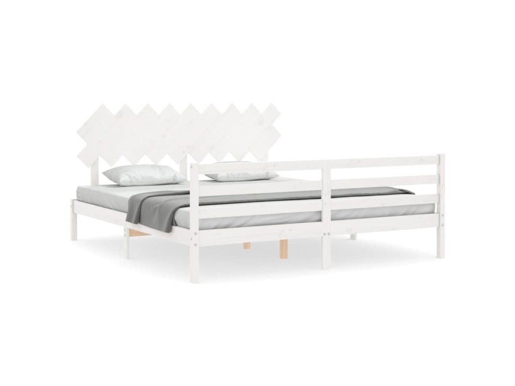 Rám postele s čelem bílý Super King Size masivní dřevo 3195302
