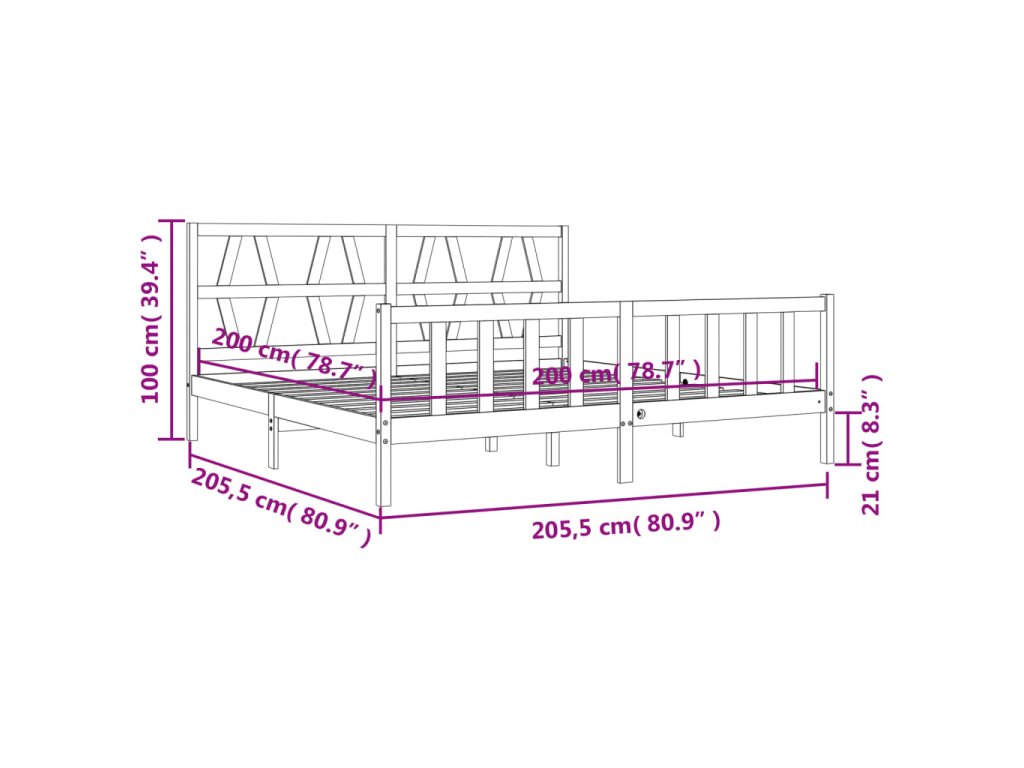 Rám postele s čelem černý 200 x 200 cm masivní dřevo 3192515