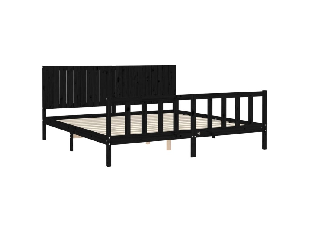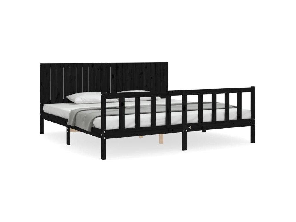 Rám postele s čelem černý 200 x 200 cm masivní dřevo 3192970